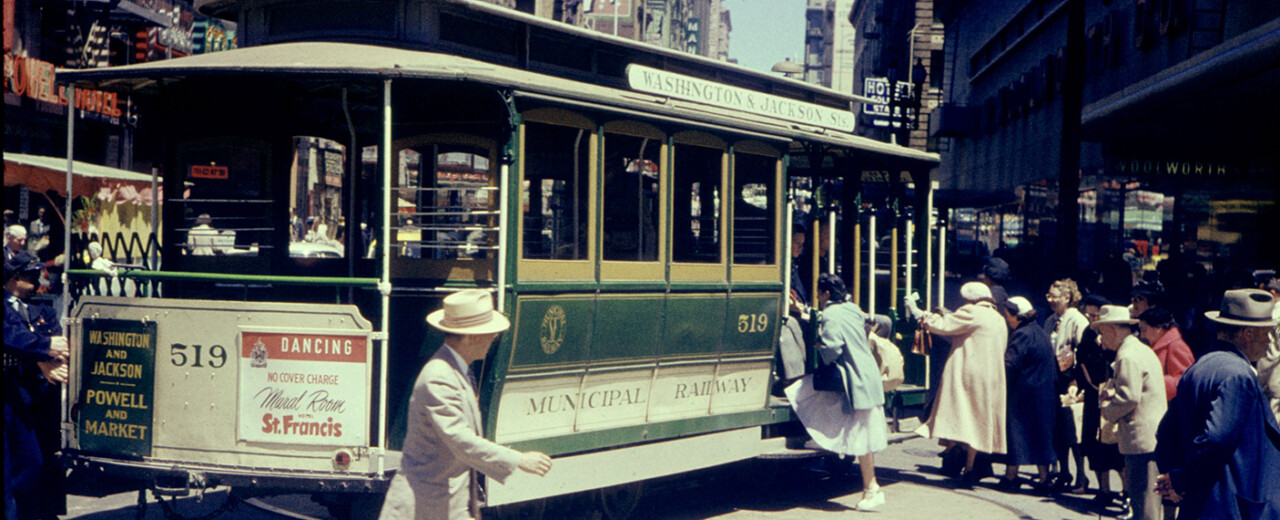 He took his first color image—a red Ford coupe with the silhouette of his wife Jean in the passenger seat, the Golden Gate Bridge in the distance—just two years after Kodachrome’s invention in 1938. For the next three decades, he harnessed its chromatic beauty to capture his surroundings with a Contax IIA 35mm camera. His images document everyday scenes, whether in Chicago, where he lived for many years, in San Francisco where he later relocated, or during his extensive travels across the U.S. and abroad.