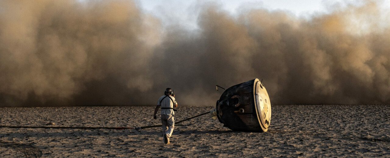 Every three months, a space rocket carrying three astronauts and cosmonauts, bound for the International Space Station, launches from Baikonur Cosmodrome, a Russian-operated spaceport in the remote Ulytau Region of central Kazakhstan. Around the same time, in the grasslands a little to the northeast, another returns to Earth.
