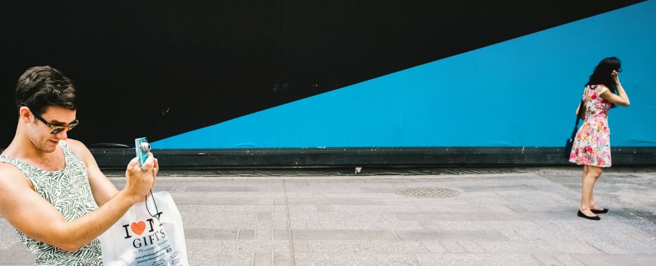 The photos in “Make Believe” fuse subject and environment together to transform otherwise banal moments into mind-bending fantasy worlds. By inspiring disbelief and, hopefully, wonder, I ask the viewer to push their understanding of not only street photography but maybe even reality itself.