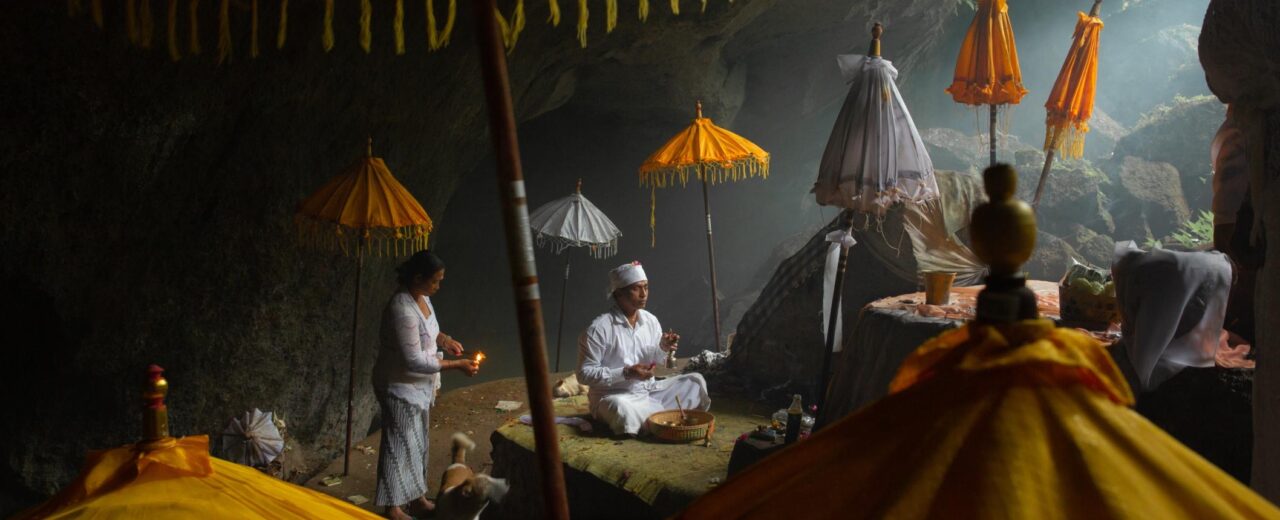 “In this layered image of a Balinese priest amid his prayers, he is the bright focus at the center, anchoring the scene. We see him through the framing composition of foreground elements–the umbrellas and the silhouette of the woman on the right–feeling as if we are being given a rare glimpse into a blessed existence. The soft milky light in the background of the cave, and the flame in the woman’s hands (the same orange as the umbrellas), help reinforce the sense of the divine, rendered even more appealing by the casual secular presence of the attentive dog. “ — Elizabeth Krist, National Geographic